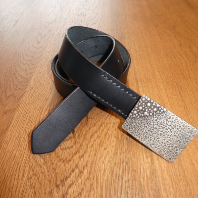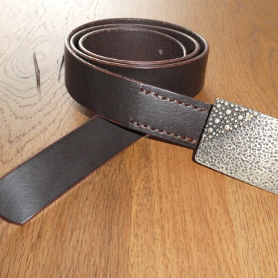handgefertigte Ledergürtel aus qualitativ hochwertigem Leder in den Farben schwarz und dunkelbraun, nach Mass gefertigt mit der gewünschten Schnalle. Die angebotenen Exemplare sind aus Vorrat sofort lieferbar.